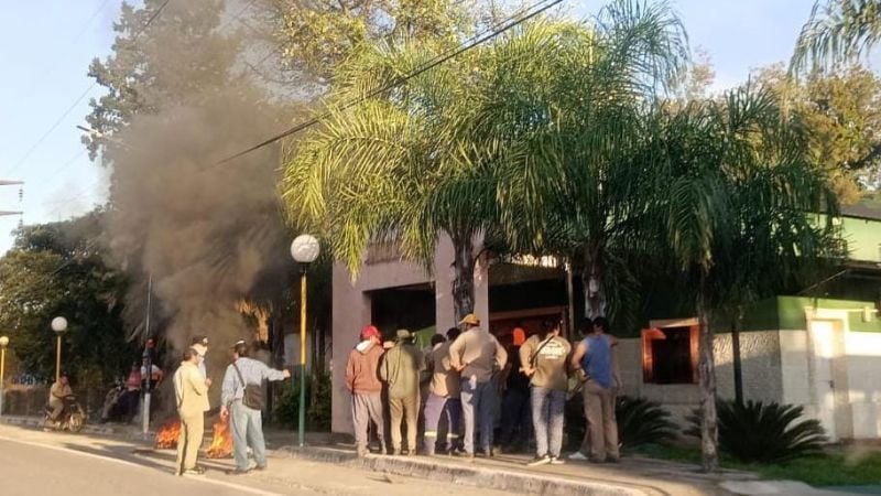 jueves, 14 de marzo de 2024 Trabajadores municipales de Bañado de Ovanta, departamento Santa Rosa, realizan una protesta con quemas…