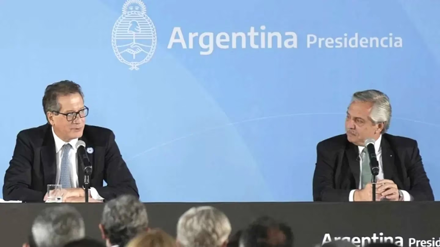 El presidente Alberto Fernández, junto al titular del BCRA, Miguel Pesce