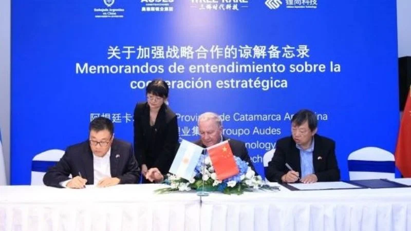 En dicho marco, la misión local llevó adelante la firma de un memorándum de entendimiento entre Catamarca y las Empresas en consorcio Lishang New Energy Technology; Sichuan Three-Rare Times Technology y Grupo Audes, para el desarrollo de la industria minera, la investigación y la formación en tecnología Industrial en la provincia.