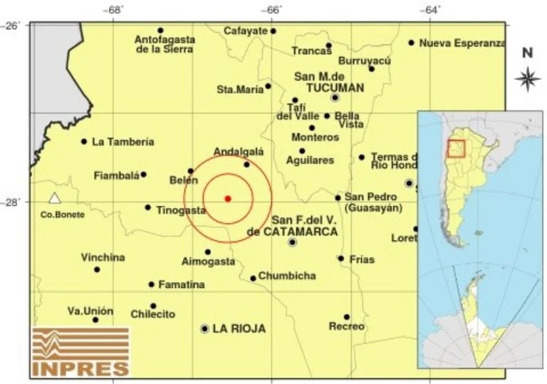 El temblor tuvo una magnitud de 4.5 grados en la escala de Richter y su epicentro se dio a solo 96 kilómetros al noroeste de San Fernando del Valle de Catamarca y a 49 kilómetros al suroeste de Andalgalá. Tuvo una profundidad de 191 kilómetros.