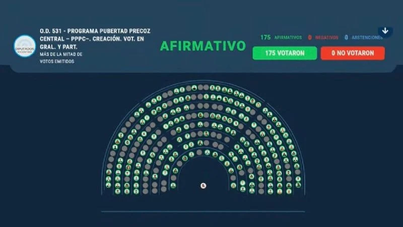 La Cámara de Diputados de la Nación aprobó este miércoles por unanimidad y envió al Senado el proyecto de ley que establece la creación del Programa Pubertad Precoz, que propone, entre otras cuestiones, avanzar en el acceso gratuito del diagnóstico, la asistencia y la provisión de la medicación y generar protocolos de actuación. El proyecto, fue una iniciativa de los diputados Rubén Manzi; Carla Carrizo y Lorena Matzen, en respuesta al reclamo de familiares de niñas y niños con esta patología.