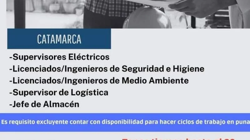 Búsqueda laboral para proyecto de litio en la puna catamarqueña