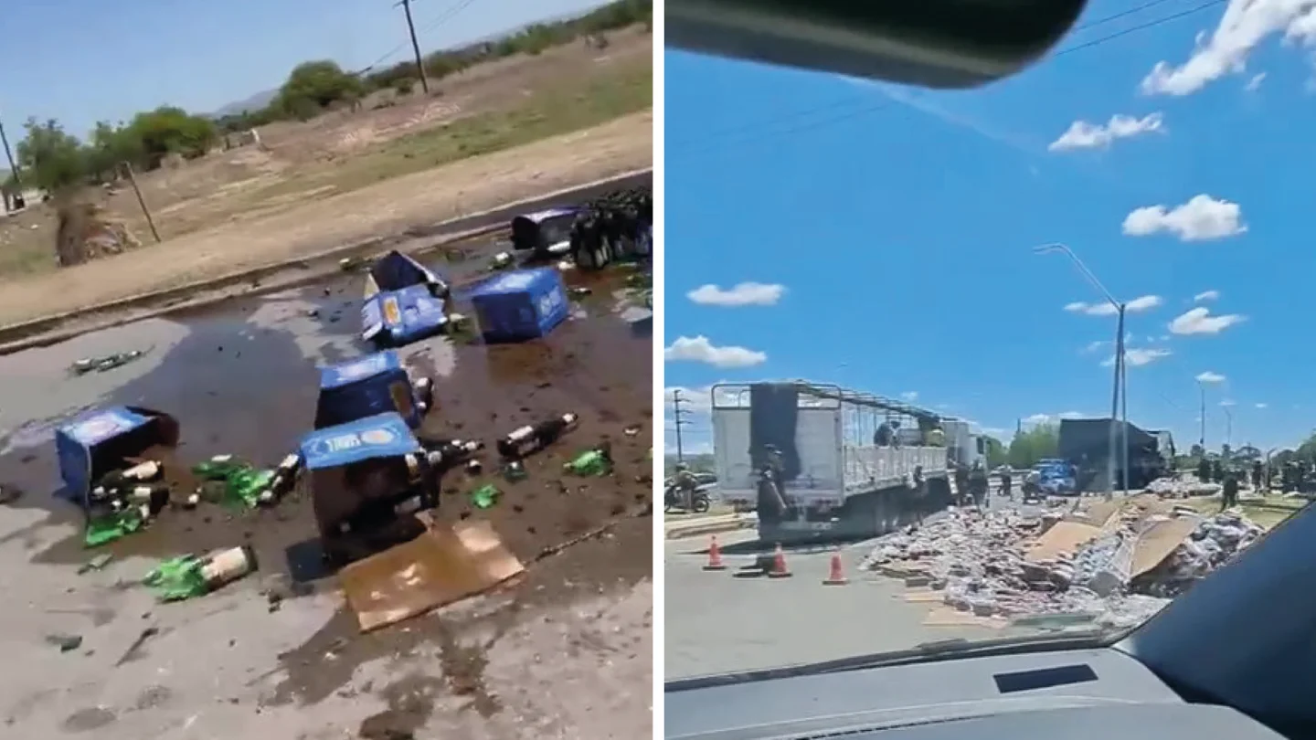 Increíble: volcó un camión de fernet y otro de Coca en la misma rotonda de Córdoba