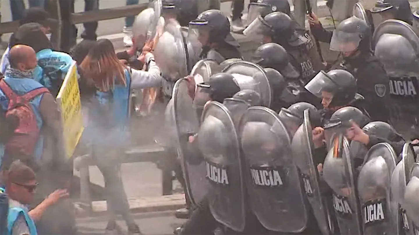 Los efectivos avanzaron sobre los manifestantes, que interrumpían la circulación en la subida ubicada a la altura de Constitución 29…