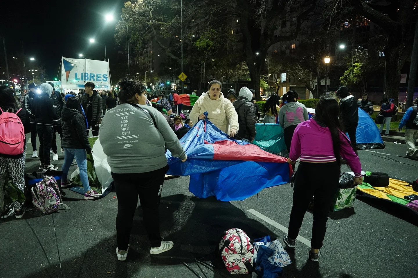 Los piqueteros extienden la protesta y se quedarán otra noche acampando frente al Ministerio de Desarrollo Social