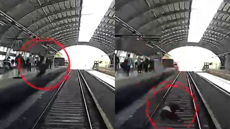 Video: un hombre se desmayó, cayó a las vías, el tren lo pasó por encima y se salvó