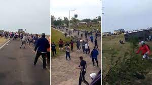 El violento enfrentamiento entre hinchas de Talleres y piqueteros que habían cortado una ruta en Santa Fe