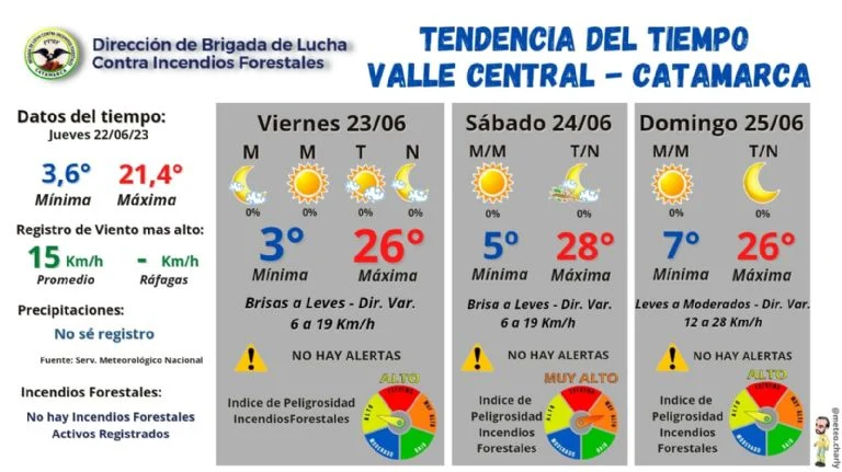 Para el fin de semana se esperan cielos despejados, con mañanas frías entre 7°C y 10°C y máximas entre los 25°C y 28°C, según los datos proporcionados por la Brigada de Lucha Contra Incendios Forestales.
