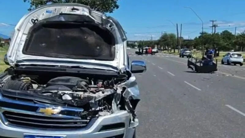 Un inusual y peligroso siniestro vial ocurrió este mediodía, pasadas las 13:30, en la intersección de la avenida Virgen del Valle y calle Los Algarrobos. El incidente se desencadenó cuando un carro de color gris, sin dominio visible, se desprendió de una camioneta Toyota SW4 conducida por Mauricio Rodríguez (28), quien resultó ileso. El acoplado fuera de control impactó inicialmente contra una camioneta Chevrolet S10.